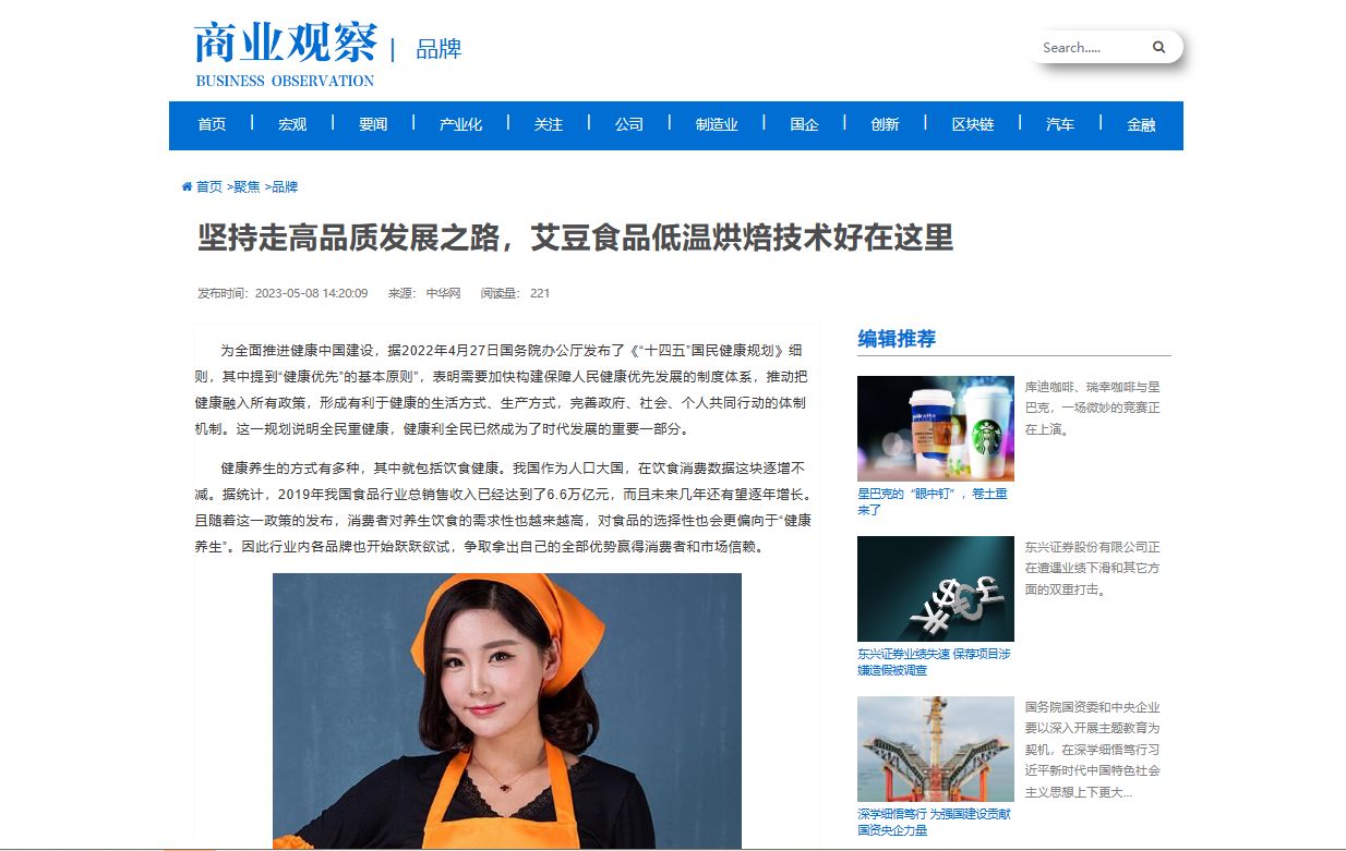 中国经济新闻网、凤凰网、糖酒快讯、中国报道网等各大媒体对艾豆食品的报道,以及网易、食界网、腾讯等媒体朋友们的关注,这是对艾豆食品的认可和重视。四川爱豆一定再接再厉,为大家提供更好的产品和服务!