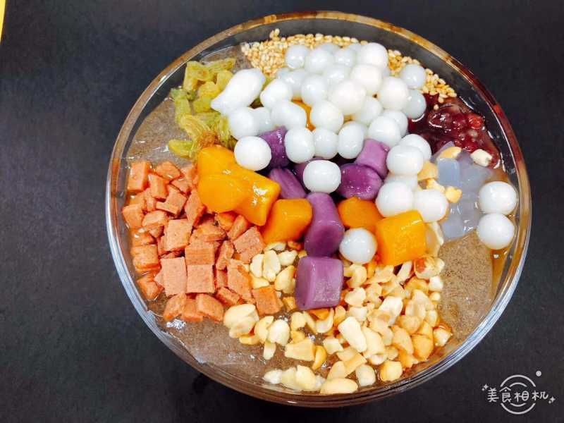 基本配料为糖红豆,花生碎,葡萄干,山楂片,红糖水。加入醪糟,芝麻,花果酱,鲜果,干果等卖相更佳!需要更详尽的流程可联系四川爱豆食品,做出更高端更美味的手工冰粉哦